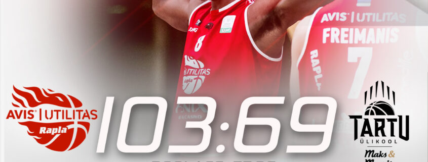 Pühapäeval selle aasta viimase kodumängu pidanud AVIS UTILITAS Rapla ei jätnud Tartu Ülikool Maks & Moorits võistkonnale lootust pingeliseks mänguks, sest kohe avaminutitel võeti juhtpositsioon kindlalt enda kätte. Nii võideti Tartu meeskonda suureskooriliselt 103:69 (25:9, 30:17, 27:17, 21:26).