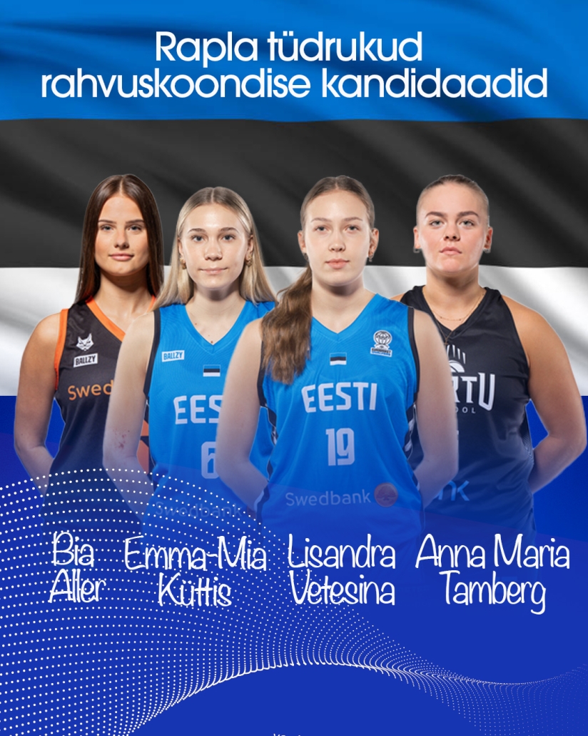 Suur rõõm ja au on näha lausa nelja Rapla tüdrukut rahvuskoondise kandidaatide nimekirjas. Eesti naiste korvpallikoondis koguneb järgmisel nädalal EM-valikmängudeks, kui ees ootavad kaks mängu võõrsil Hollandi ja Sloveeniaga ning kodumäng Läti vastu.