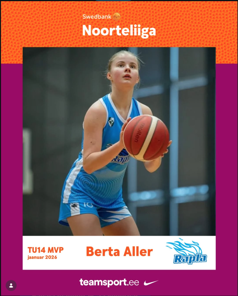 RaplaKK2026-02-21 20:32:552026-02-21 20:32:57Swedbank noorteliiga jaanuarikuu TU14 MVP – BERTA ALLER