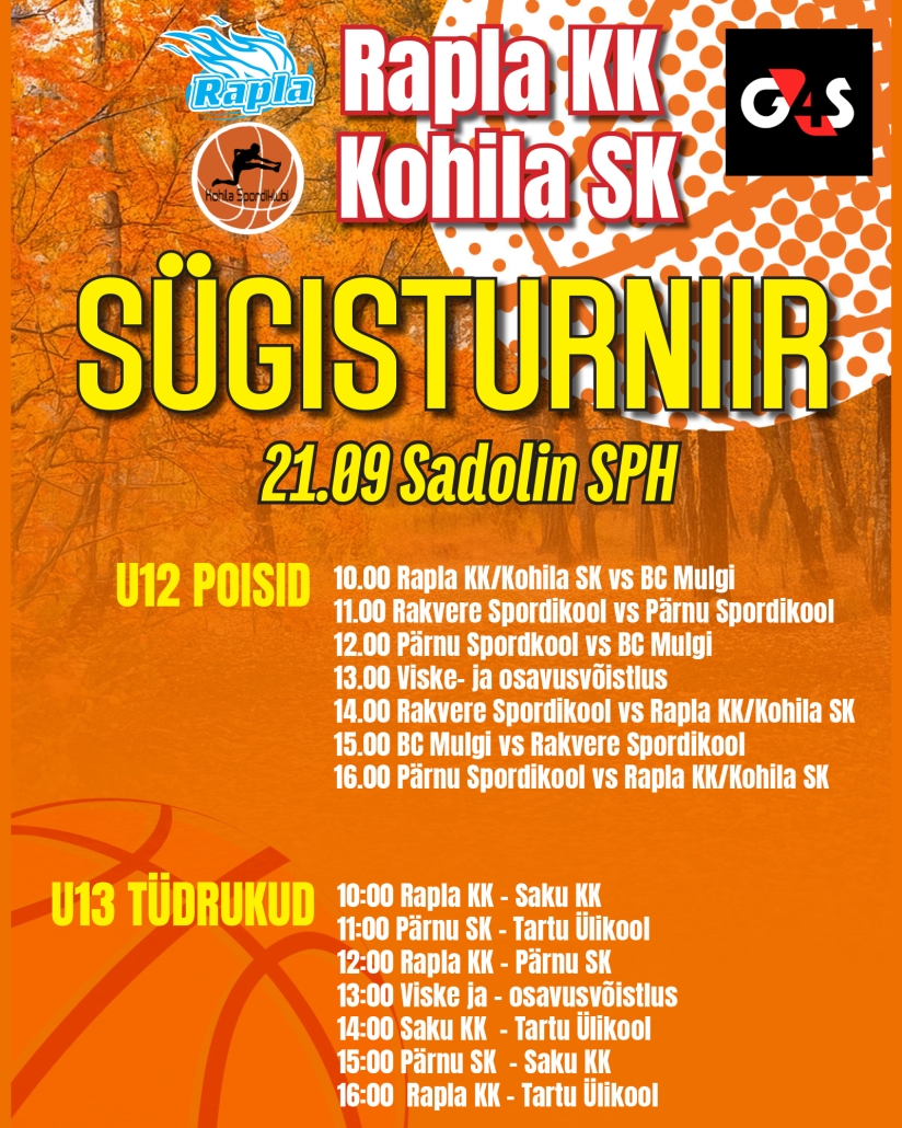 21. septembril täitub Sadolin Spordihoone taas elevuse ja sportliku vaimuga, kui Rapla Korvpallikool annab avapaugu juba 16. korda toimuvale sügisturniirile. Turniirist võtavad osa U12 ja U13 vanuseklassi võistkonnad – nii poisid kui tüdrukud – üle Eesti.